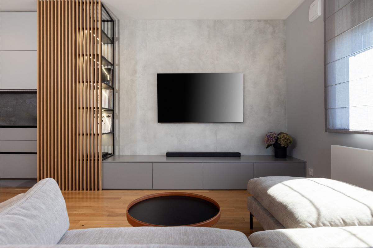 Siva boja zavjesa djeluje moćno i elegantno u većim prostorima, poput ovog stana, gdje imamo dovoljno prirodnog svjetla. Ova boja unosi osjećaj smirenosti, dok istovremeno dodaje notu sofisticiranosti i luksuza.